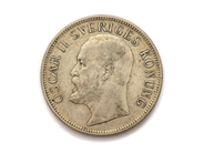MYNT, silver, 2 Kronor, 1890, Oscar II, kvalité ca 1-1?, diameter 31 mm, vikt 14,7 g.