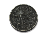 MYNT, koppar, 1/3 Skilling Banco, Oscar I, 1851, kvalité ca 1+, diameter 20 mm, vikt 4,8 g.