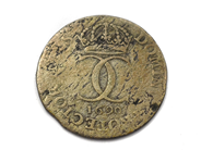 MYNT, koppar, 1/2 Öre, Gustav II Adolf, präglades 1627-1631 i Säter, kvalité ca 1?, snedpräglad, diameter 35 mm, vikt 13,5 g.