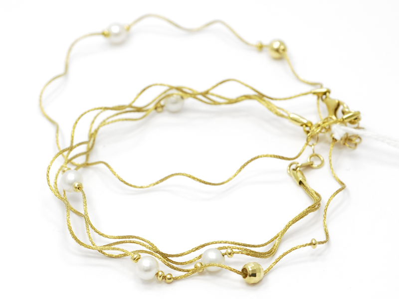 Set, Collier med pärlor 45cm Armband med pälor 20cm 18K 7,7g