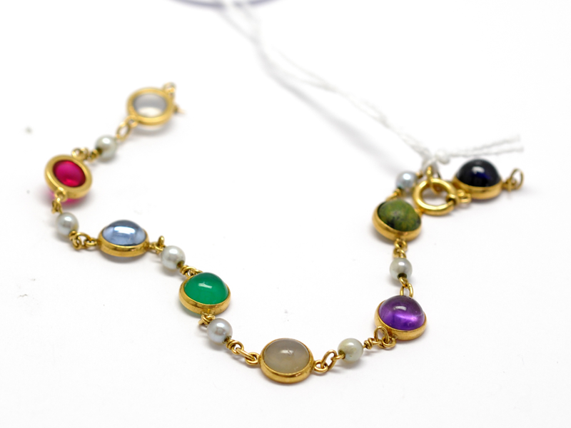 Armband, med färgade stenar och pärlor, defekt, 18K 19cm 5,8g