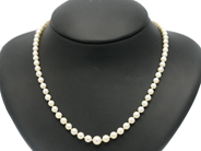 PÄRLCOLLIER, odlade pärlor 6,5 mm, metallås med smaragder och 16 åttkantslip dia ca 0,16 ctv, ca W/VS, en skadad, längd 50 cm.