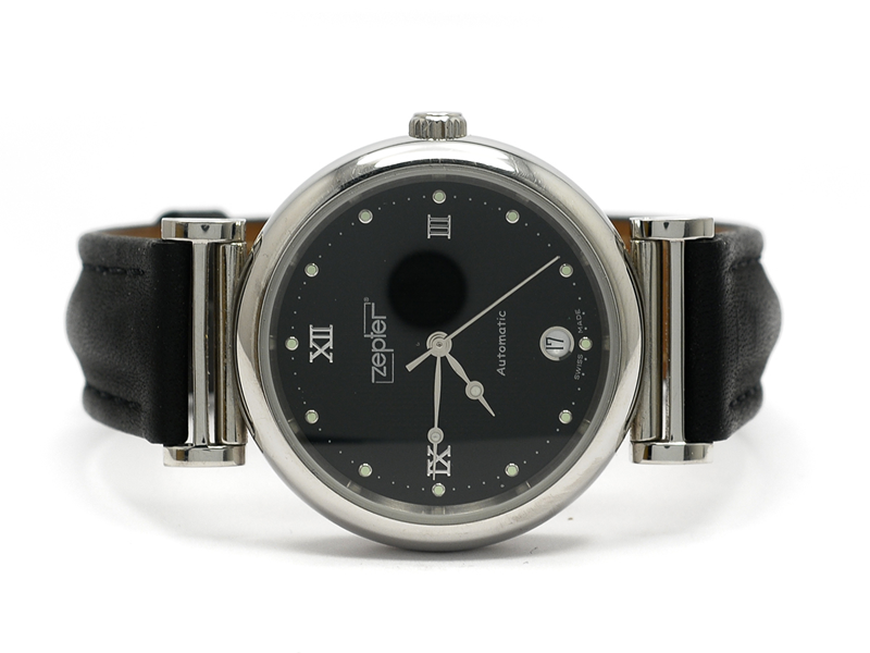 ZEPTER, La Luna, Cal ETA 2824-2, Boett nr. VA0772, Ref nr. CABC, Serie nr. 0555, herrur, 37 mm, stål, automatisk, safirglas, datum, defekt, läderband, originalspänne, ca 2000, box.