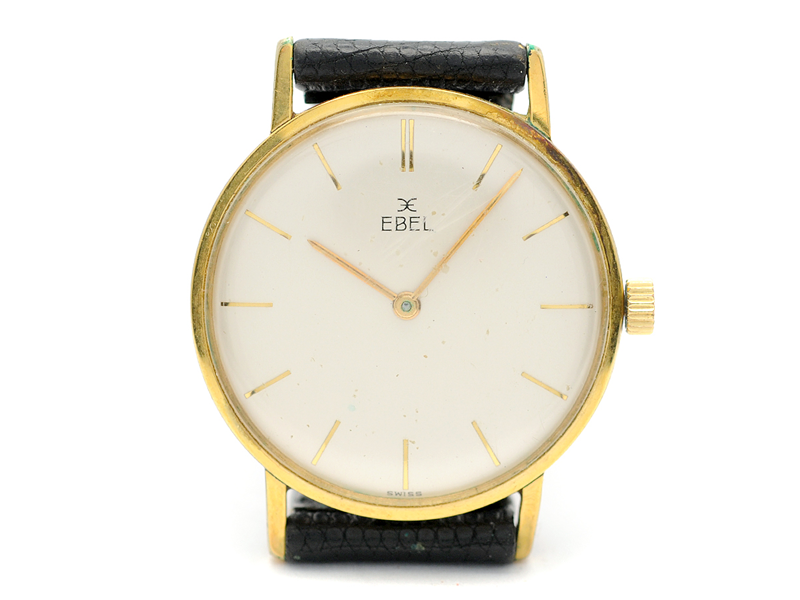 EBEL, herrur, 33 mm, Cal 97, Boett nr. 797001, 639, doublé, manuell, plexiglas, skadad urtavla, defekt, läderband, ca 1965.