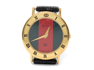 GUCCI, damur, 25,5 mm, Serie nr. 0162914, Ref nr. 3000 L, Boett nr. 39980, doublé (10 micron), quartz, mineralglas (skadat), läderband, originalspänne, ca 1995, box.