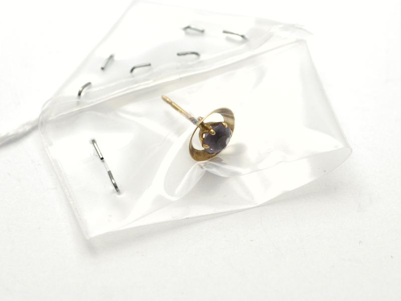 Örhänge, 14K med sten, saknar snurrebuss, 0,5g