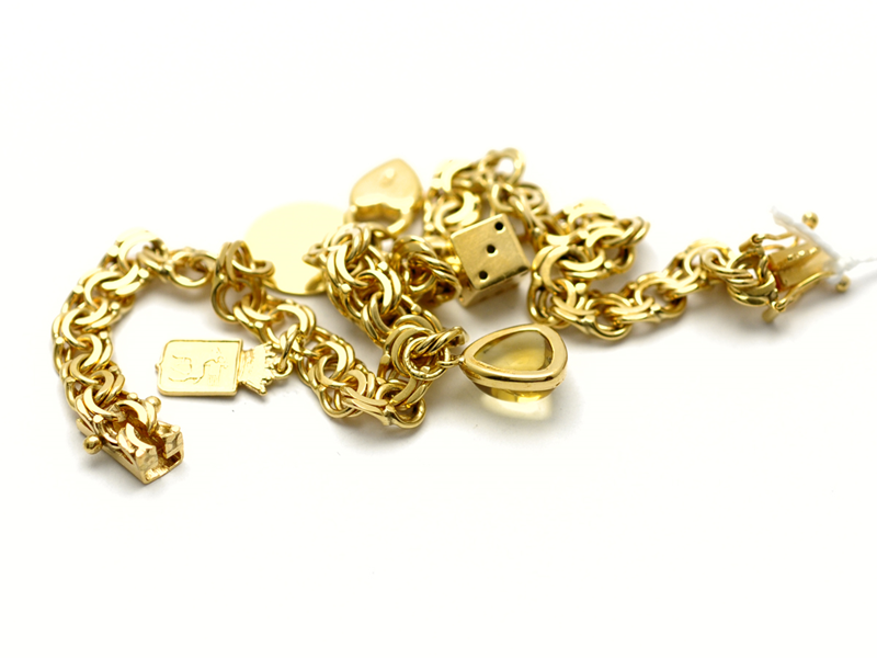 Armband, 18K Bismarck med 5 berlocker, 22cm, 19,3g