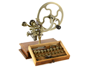 URMAKARVERKTYG, välsmaskin tillverkad i mässing och stål (Depose 23352 I FS), monterad på träfot inklusive låda med tillbehör, ca 1880.