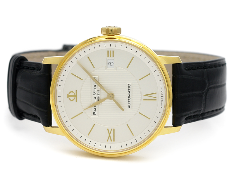 BAUME & MERCIER, Genève, Classima, Cal BM 11892A (ETA 2892 A2), Serie nr. 5387303, Ref nr. MOA08787, Boett nr. 65627, herrur, 39 mm, 18K guld, automatisk, safirglas, datum, glasbaksida, läderband, originalspänne i doublé, cert, februari 2011, box, ytterkartong.