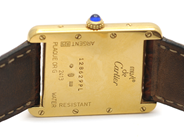 must de CARTIER, Tank, Cal 87, Boett nr. 2413/128629PL, herrur, 25,5 x 25,5 (34) mm, förgyllt silver, quartz, safirglas, datum, läderband, viklås, ca 2003.