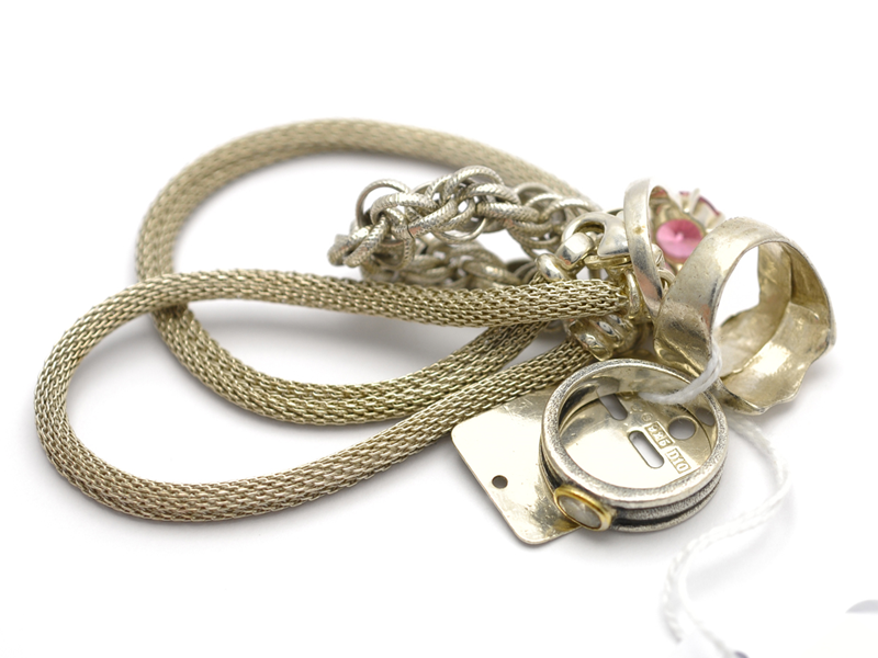 Parti silver, 1 Collier, 3 ringar, 1 Id-bricka Sterlingsilver 48,2g