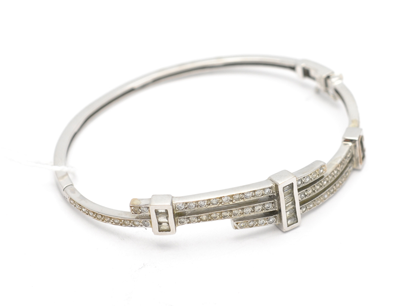 Armring, i vitguld med stenar 14K Ø6-6,5cm 16g