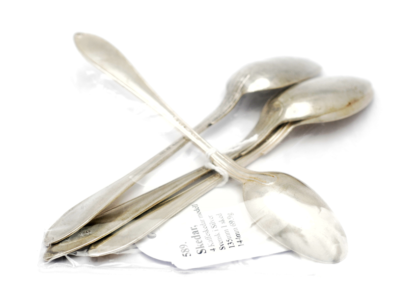 Skedar, 4 Kaffeskedar modell Svensk i Silver 135mm 1 sked 144mm 69,9g