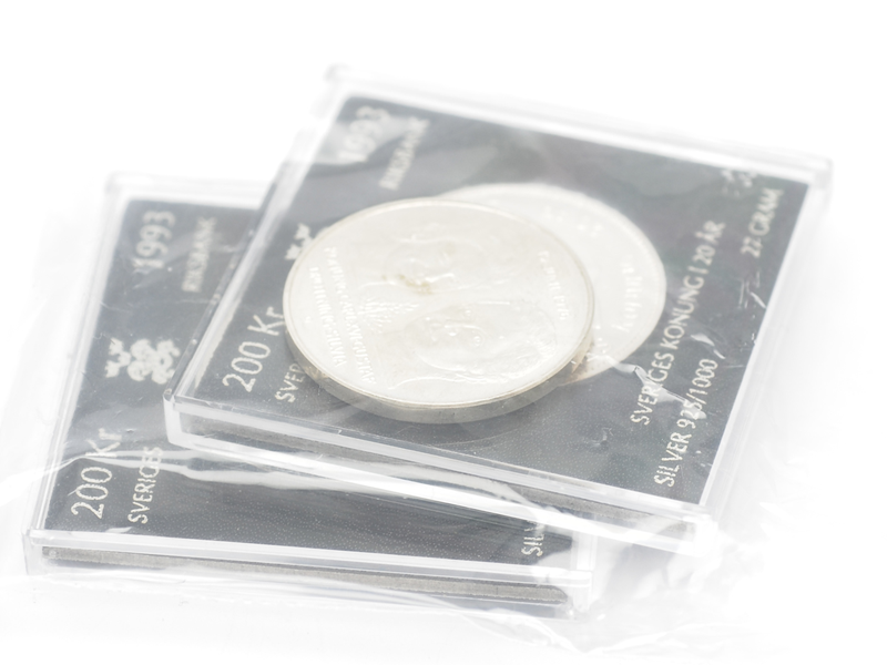 Mynt, Silver 925 Sveiges konung i 20 år 2 stycken á 200 kronor 1 á 50 kronor 81g