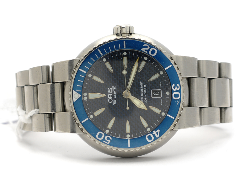 Herrur, Oris automatic stål boettnr. 24-43046 repig keramikring med stållänk, två extra länkar och extra armband i gummi manual i box.