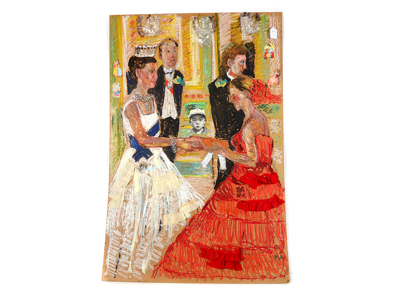 Marianne Ågren 1943- collage på pannå, 122x80cm något skadad, oinramad