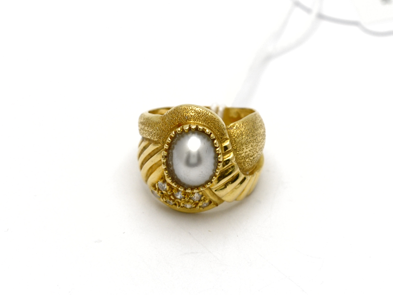 Ring med pärla och stenar 18K Ø 17 1/4 9,0g