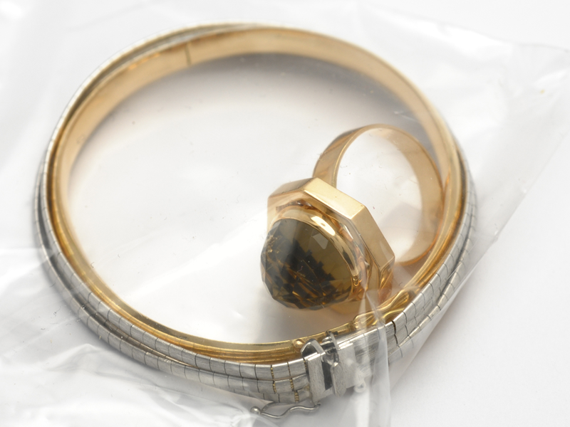 Parti guld skevt och slitet innehåller sten 18K 38,5g