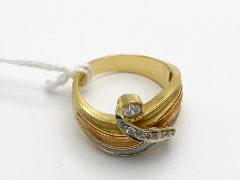 Ring med stenar trefärgad 18K Ø 18 1/4 7,7g