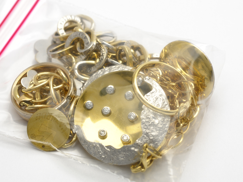 Parti guld defekt och skevt innehåller stenar och små diamanter 18K 51,0g
