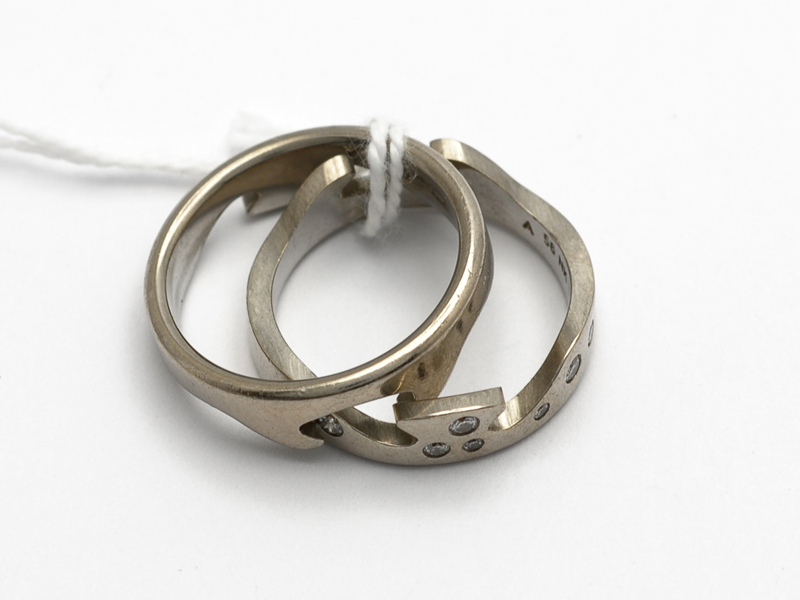 Ring Georg Jensen små repor med diamanter vitguld 18K Ø 18 1/2 12,0g