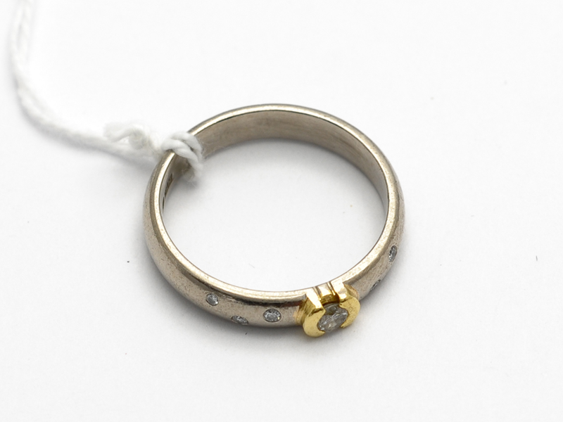 Ring med diamanter varav 1xca0,15ct tvåfärgad 18K Ø 18 5,3g