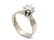ENSTENSRING, 18K vitguld, briljantslipad diamant 0,93 ct enligt gravyr, ca TW(G)/P1, mindre skada på kuletten, Guldsmedjan, Kalmar 1973, stl 17,5+ mm, vikt 5,8 g.