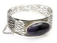 ARMRING, silver, cabochonslipad ametist, inneslutningar som når ytan, mått 5,7 x 6 cm, vikt 43,1 g, säkerhetskedja.