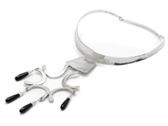 COLLIER, 2 HÄNGEN, silver, onyx, Evert Gustafsson, Stockholm 1969, längd ca 35 cm, vikt 72,1 g.