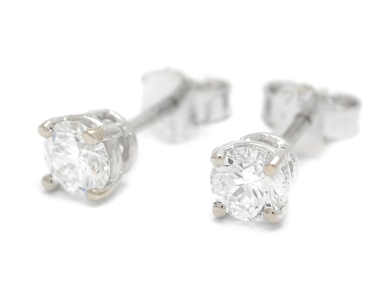 ENSTENSÖRHÄNGEN, 18K vitguld, 1 briljantslipad diamant 0,33 ct, River(D)/VS1, GIA Dossier 1119946959, 1 briljantslipad diamant 0,32 ct, River(D)/VS2, GIA Dossier 5126757429, stift, vikt 1,4 g, 2 stenkuvert.