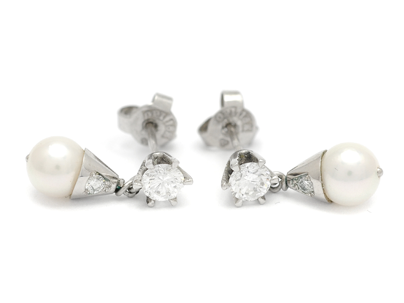 PÄRLÖRHÄNGEN, 18K vitguld vikt 3,0 g 2 briljanter 0,56 ktv TW/VS2, samt 2 brilj. 0,06 ctv, TW/ P