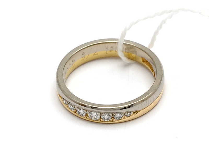 Ring tvåfärgad 18K 4,8g med diamanter 1xca.0,05ct 4xca.0,02ct 2xca.0,01ct, graverad