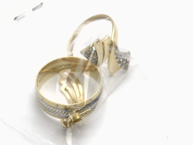 Parti guld, defekt, innehåller stenar och gravyr 18K 7,4g