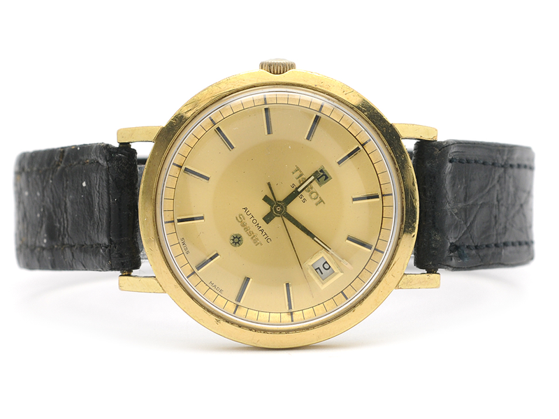 TISSOT, Seastar, herrur, 37 mm, doublé (20 micron), automatisk, plexiglas, datum, skadad urtavla, defekt, skadad boett, läderband, ca 1970.