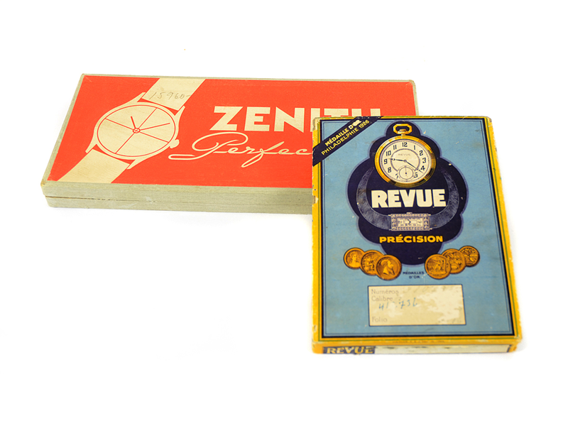 FORNITURLÅDOR, 2 st i papp, Zenith och Revue, skador.