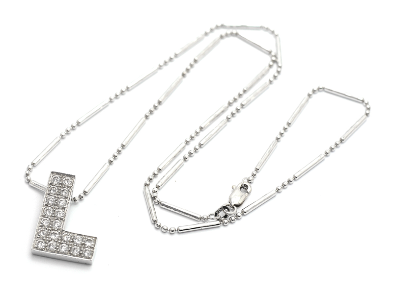 HÄNGE/KEDJA, 18K vitguld, 20 briljantslipade diamanter ca 0,80 ctv, ca W/SI, hänge i form av ett L, längd 45 cm, vikt 9,1 g.