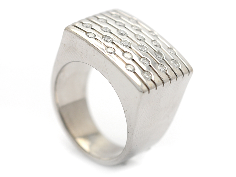 RING, 18K vitguld, 24 briljantslipade diamanter 0,48 ctv, TW/VS enligt gravyr, stl 16,5 mm, vikt 16,4 g.
