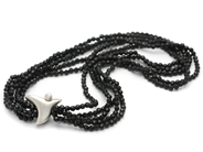 OLE LYNGGAARD, collier, 5-radig, lås, onyx, 18K vitguld, briljantslipad diamant 0,06 ct enligt gravyr, låsets vikt 10,7 g, längd 41 cm, originaletui.