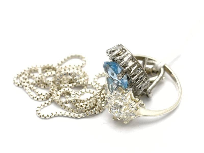 Halskedja, Venezia 42cm, hänge med stenar, ring Ø17 med stenar i silver 6,7g
