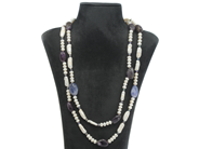 PÄRLCOLLIER, odlade barocka sötvattenspärlor, vita button shape ca 7 mm/svarta, färgstenar, längd 125 cm.