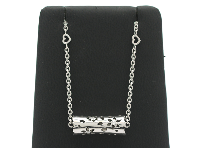 OLE LYNGGAARD, lås, kedja, 18K vitguld, 5 briljantslipade diamanter ca 0,05 ctv, ankarlänk med 4 hjärtan, längd ca 47 cm, vikt 11,2 g.
