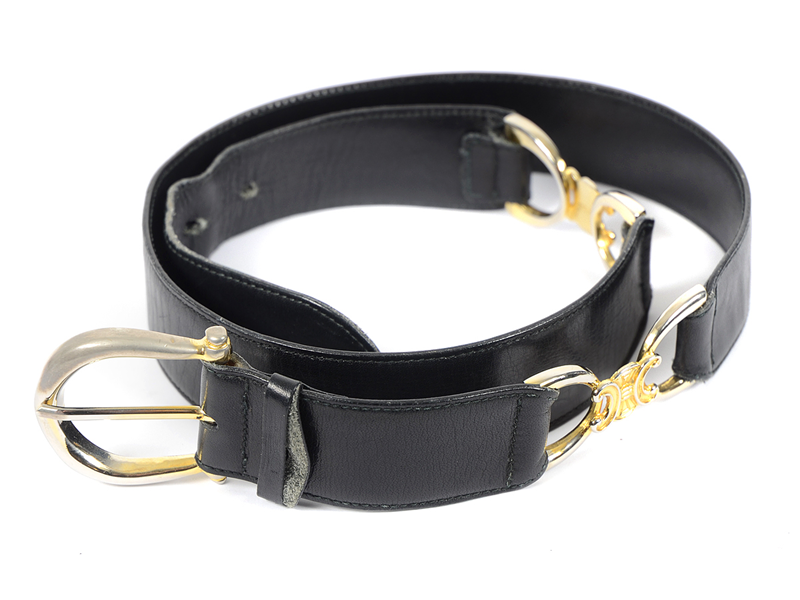 SKÄRP, CELINE, svart läder med gulmetall detaljer, bredd 3 cm, längd 85 cm, visst slitage.