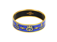 ARMRING, HERMÈS, Bangle i klarblå emalj samt guldpläterade kanter, bredd 2 cm, stl 70 mm. Tillbehör liten Hermès påse.