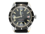 TIBAC, Calendar (5 ATM), Cal TW, herrur, 36 mm, vitmetall, manuell, plexiglas, datum, skadad urtavla, läderband, ca 1965.