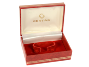 ORIGINALBAND, till Omega damur, svart mönsterpressat kalvskinn, bredd 13/10 mm, originalspänne i doublé, ca 1995.
