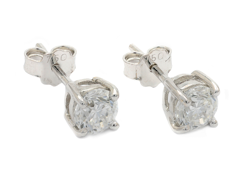 ENSTENSÖRHÄNGEN, 18K vitguld, briljantslipad diamant 0,50 ct, TW(F)/VS1, GIA laserinskription 2146501955, briljantslipad diamant 0,50 ct River(E)/VS1, GIA cert 2151343064, vikt 1,5 g, stift.