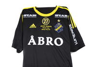 MATCHTRÖJA, A.I.K. fotboll, säsongen 2013, ”hemma”, Adidas, svart/gul, storlek M, med brodyr ”AIK – IFK Göteborg, Friends Arena, Måndag 6 Maj 2012”, Nr. 11, tillhörande Nabil Bahoui, signerat dokument medföljer.
