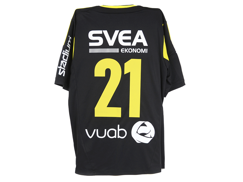 MATCHTRÖJA, A.I.K. fotboll, säsongen 2013, ”hemma”, Adidas, svart/gul, storlek M, med brodyr ”AIK – IFK Göteborg, Friends Arena, Måndag 6 Maj 2013”, Nr. 21, tillhörande Kennedy Igboananike, signerat dokument medföljer.