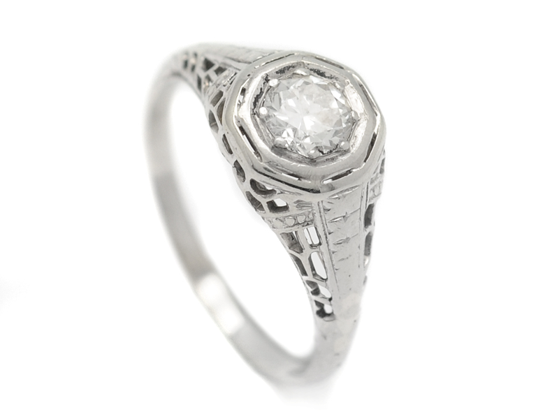 ENSTENSRING, 18K vitguld, briljantslipad diamant ca 0,40 ct, ca W(H)/VS2, stl 16 mm, vikt 2,4 g.