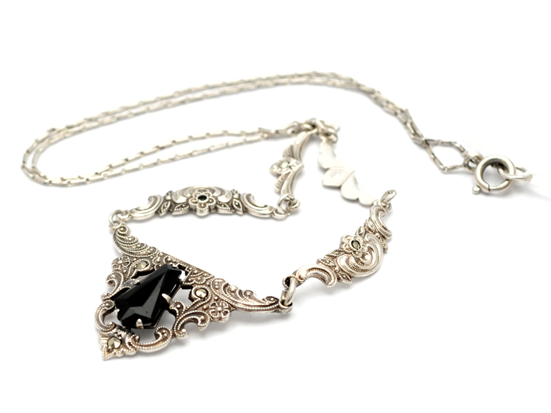 Halsband, kedja med integrerat hänge med stenar, varav en sten fattas, silver 42cm 6,1g
